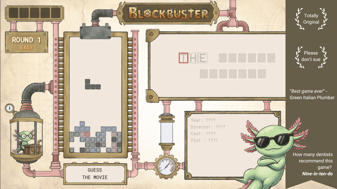 Play Tetr.. um, play a totally original block game and guess names of Hollywood movies. You will get hints about the movie along the way.